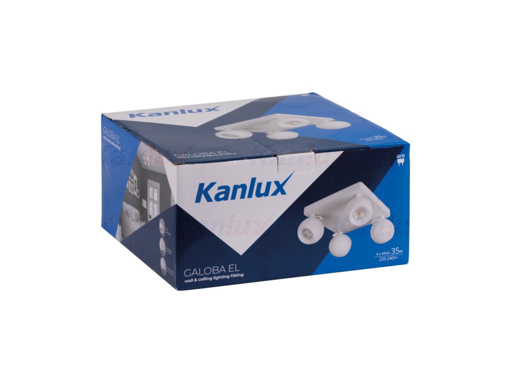 Kanlux GALOBA je kompletná rada svietidiel, ktorá sa skladá zo závesných svietidiel (GALOBA C), nástenných svietidiel (GALOBA W) a nástenno-stropných svietidiel. Závesné svietidla Kanlux GALOBA C možno úspešne použiť pri osvetlení ostrovčekov alebo stolov, nástenno-stropné svietidla GALOBA (od 1 do 4 svetelných bodov) možno použiť v obývacej izbe, predsieni alebo v spálni. Aranžmány doplnia nástenné svietidla GALOBA W so zabudovaným vypínačom. Celá rada svietidiel Kanlux GALOBA má odnímateľné tienidlo, vďaka ktorému môžeme rýchlo a pohodlne vymeniť svetelné zdroje. Maximálna výška svetelného zdroja u svietidiel GALOBA je 55mm. Odporúčame používať zdroje Kanlux SMART (S GU10) alebo iQ-LED LIFE (IQ LED L GU10).Dodatočné parametre