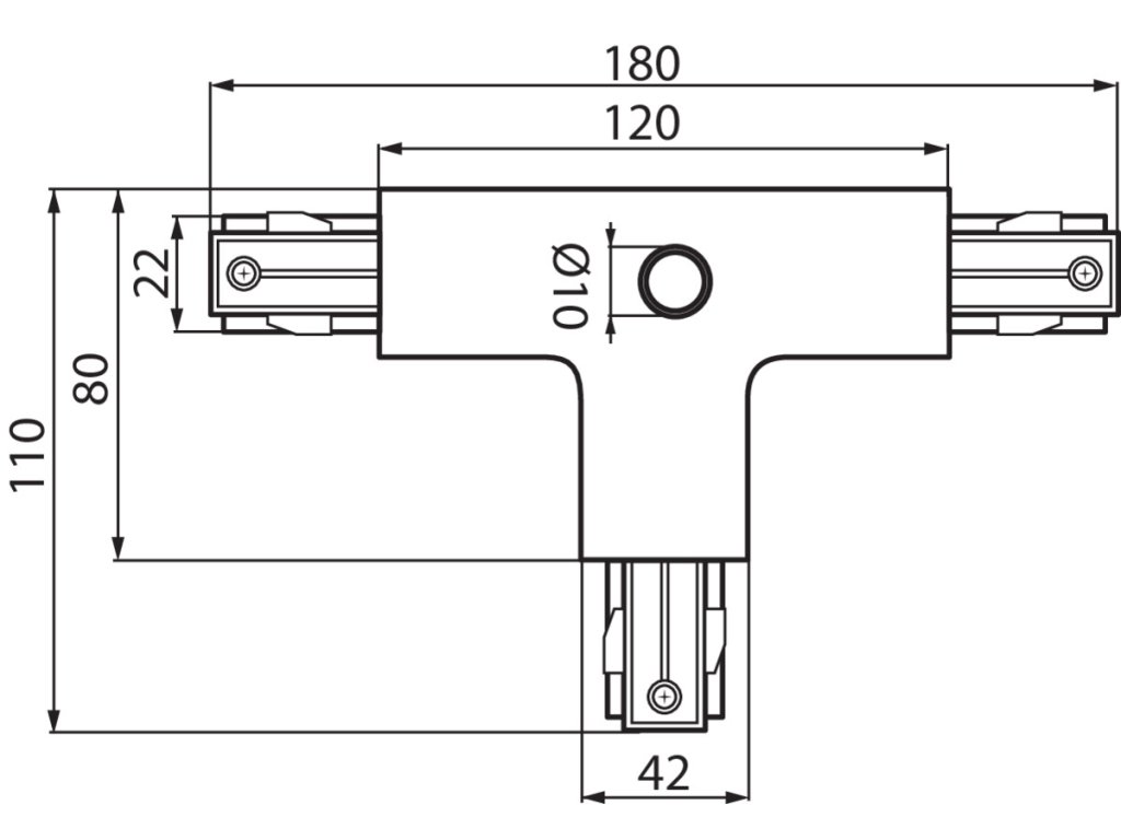Součásti lištového kolejnicového vedení, napájené 220-240V~50/60Hz. Přípojka ve tvaru T pravá.Dodatočné parametre