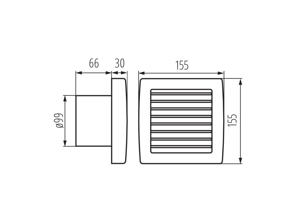 Ventilátor s automatickou žaluzií - napájecí napětí: 230V, 50Hz - příkon motoru: 19W - objemový průtok vzdušiny: 100m3/hod při 7,5 Pa - krytí: IP X4 - třída izolace: II. - průměr výstupního hrdla: 100 mm - průměrná hladina akustického tlaku v jednom metru 38,5 dB - chvění: X/Y/Z = 3,94/1,71/2,37 mm/sDodatočné parametre